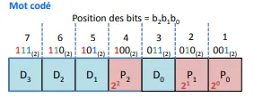 Les bits de contrôle se trouvent sur les positions des puissances de 2 . Par exemple, avec un mot à transmettre tel que :